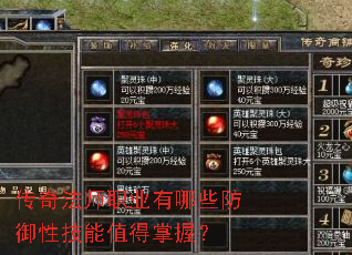 传奇法师职业有哪些防御性技能值得掌握?